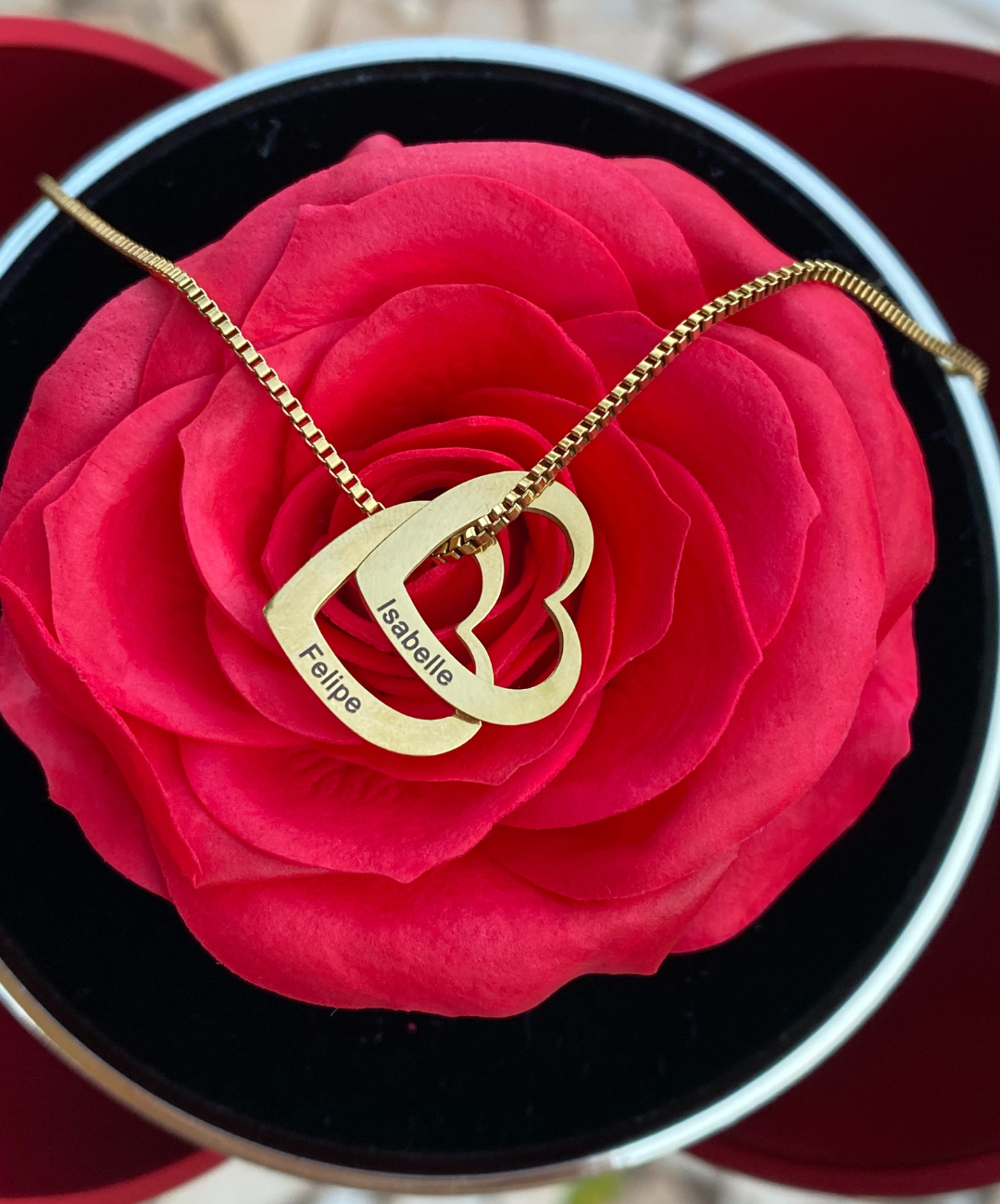 Porta-Joia com Rosa Preservada e Colar Personalizável com Corações , O Presente Perfeito para Surpreender
